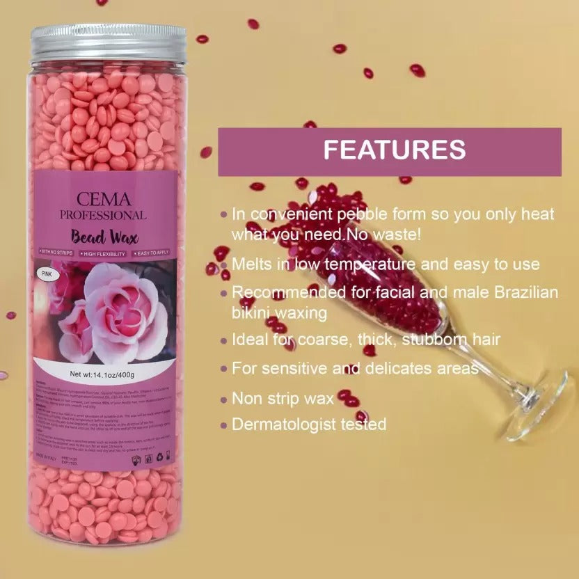 CEMA Beans Depilatory Strip less Used For Upper Lips Arms Legs Full Body, Pink Wax  (400 g)