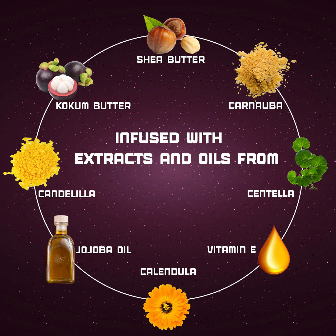 Infused with natural moisture-locking emollients like Kokum Butter, Shea Butter, and Carnauba, this palette ensures your skin stays hydrated and supple throughout the day. Calming ingredients such as Candelilla, Calendula, and Centella soothe and heal your skin, while Jojoba oil keeps it irresistibly soft. Additionally, Vitamin E, a powerful antioxidant, promotes a youthful and healthy complexion.