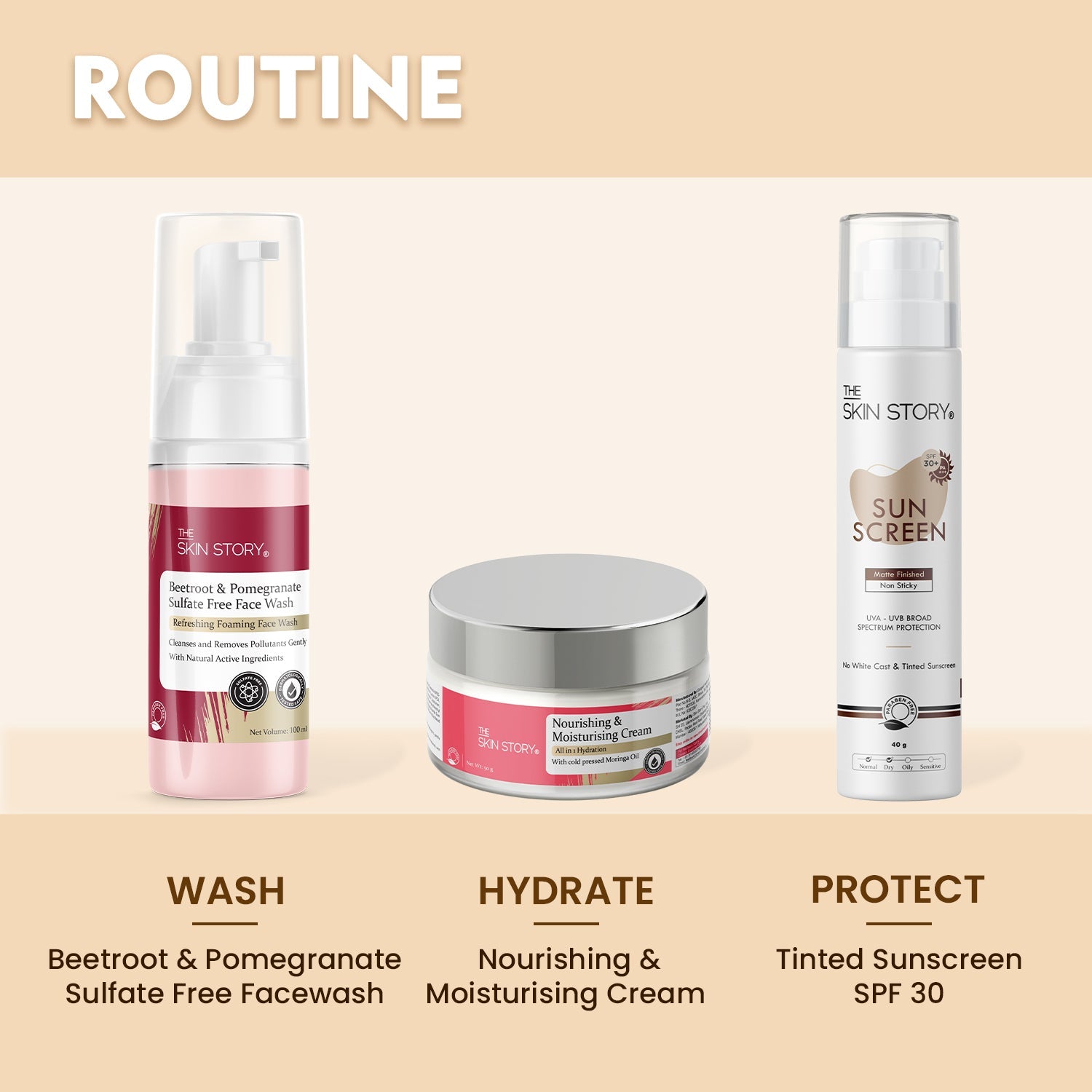 2. Application: Take a small amount of The Skin Story Nourishing & Moisturising Cream.