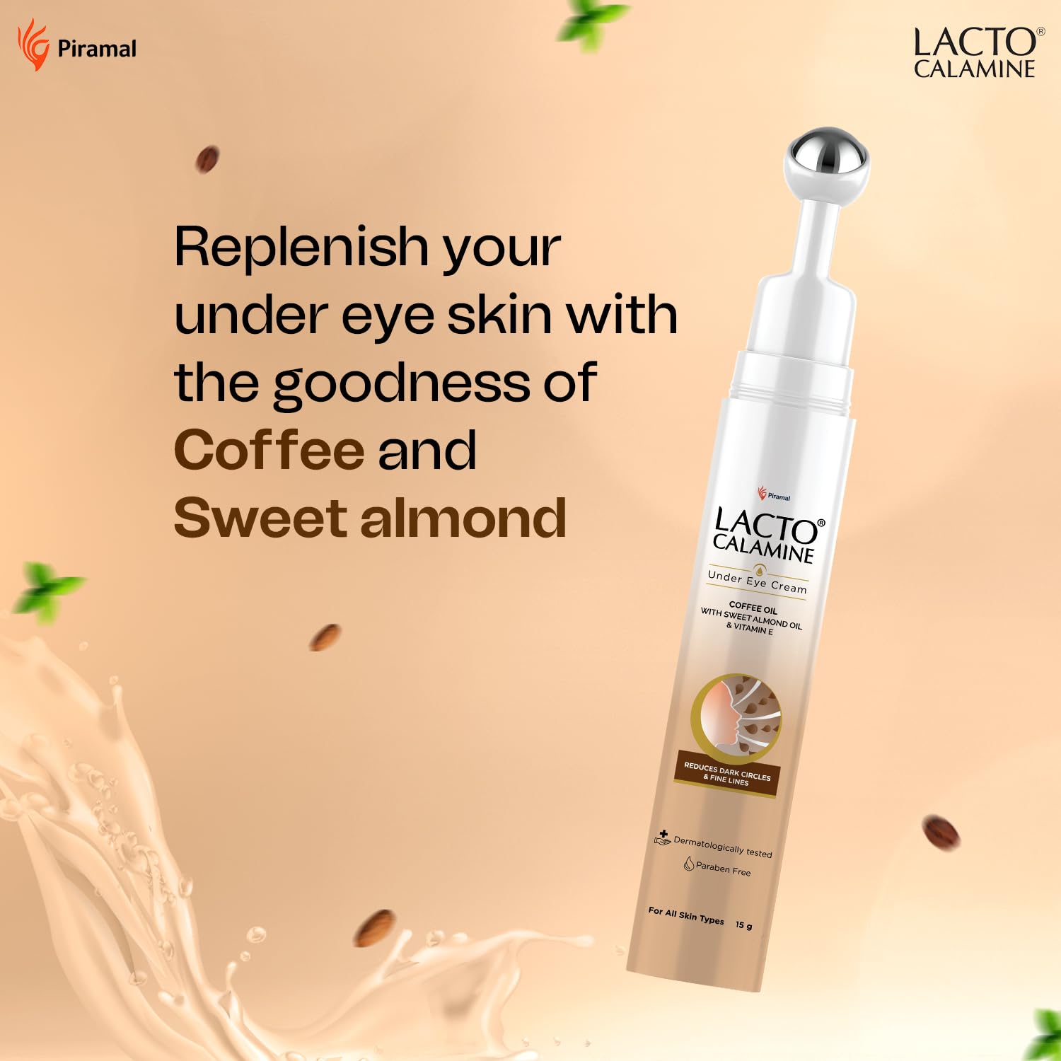 Tired, puffy eyes? Lacto Calamine Under Eye Cream is your ultimate dark circle & fine line corrector! Infused with Coffee Oil, Multi-Peptides, Niacinamide, and Vitamin E, this lightweight, fast-absorbing formula reduces dark circles, smooths fine lines, and depuffs tired eyes. The cooling massage roller enhances blood circulation, giving you refreshed, bright, and youthful eyes every day. Suitable for both men & women.
