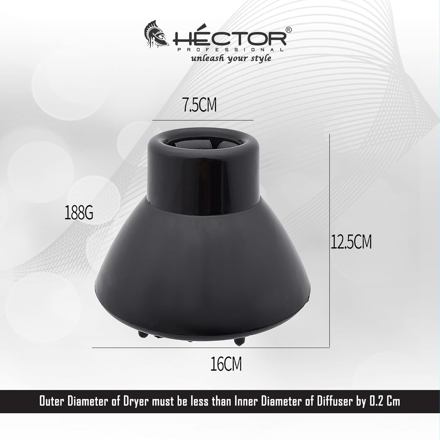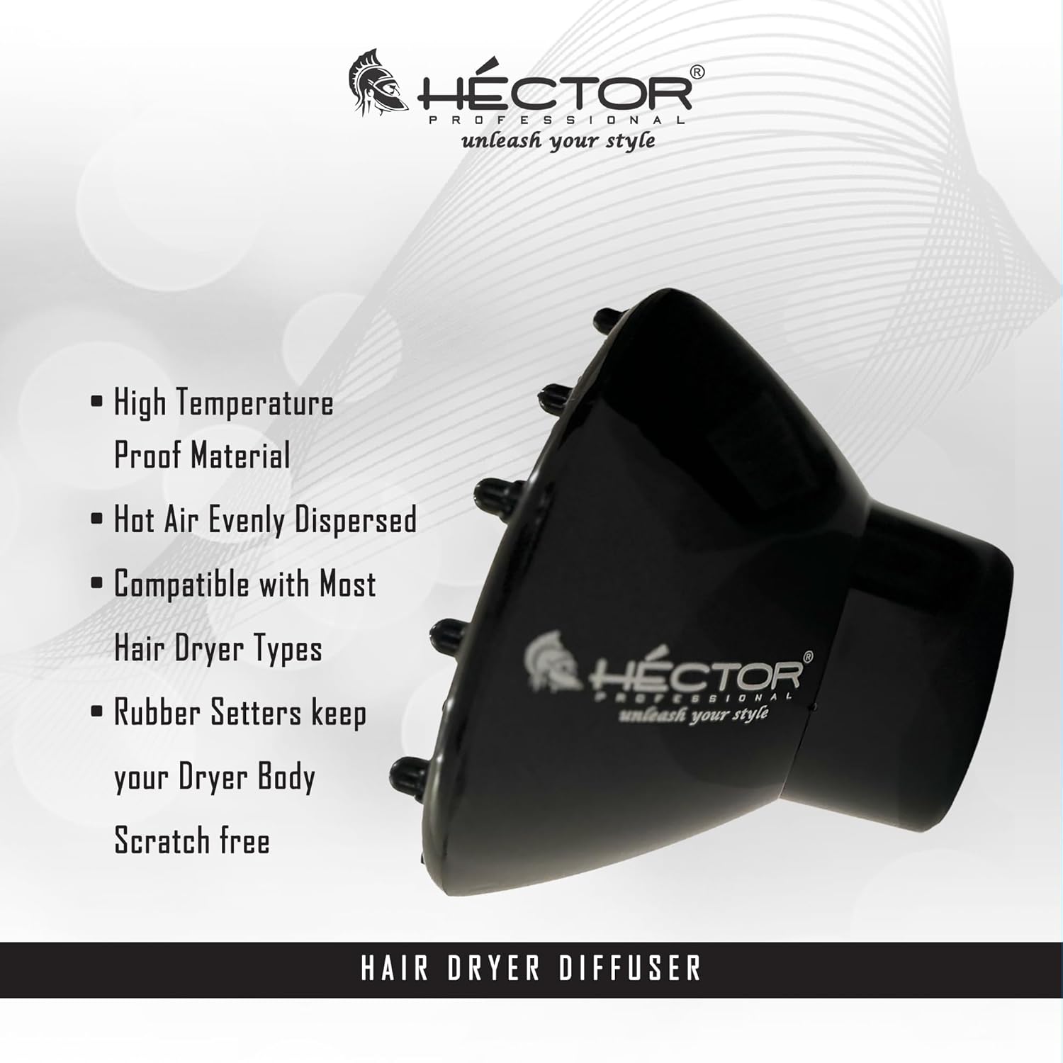 Enhance your curls and add volume effortlessly with the Hector Professional Diffuser. Designed for curly, wavy, and thick hair, this attachment helps define curls, reduce frizz, and distribute heat evenly for a salon-quality blowout at home. Its universal fit makes it compatible with most standard hair dryers, ensuring seamless styling for all hair types.