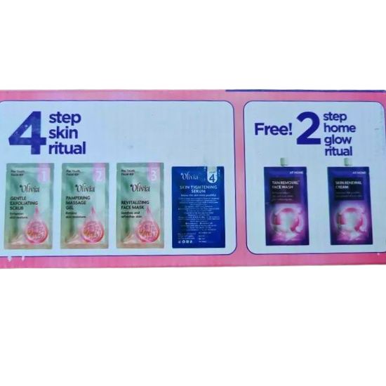 Experience the rejuvenating and anti-aging benefits of Olivia Pro Youth Facial Kit with Collagen and Peptide, designed to restore your skin's youthful radiance and firmness with a comprehensive facial treatment. For more detailed information, please refer to the product packaging or the official Olivia website.