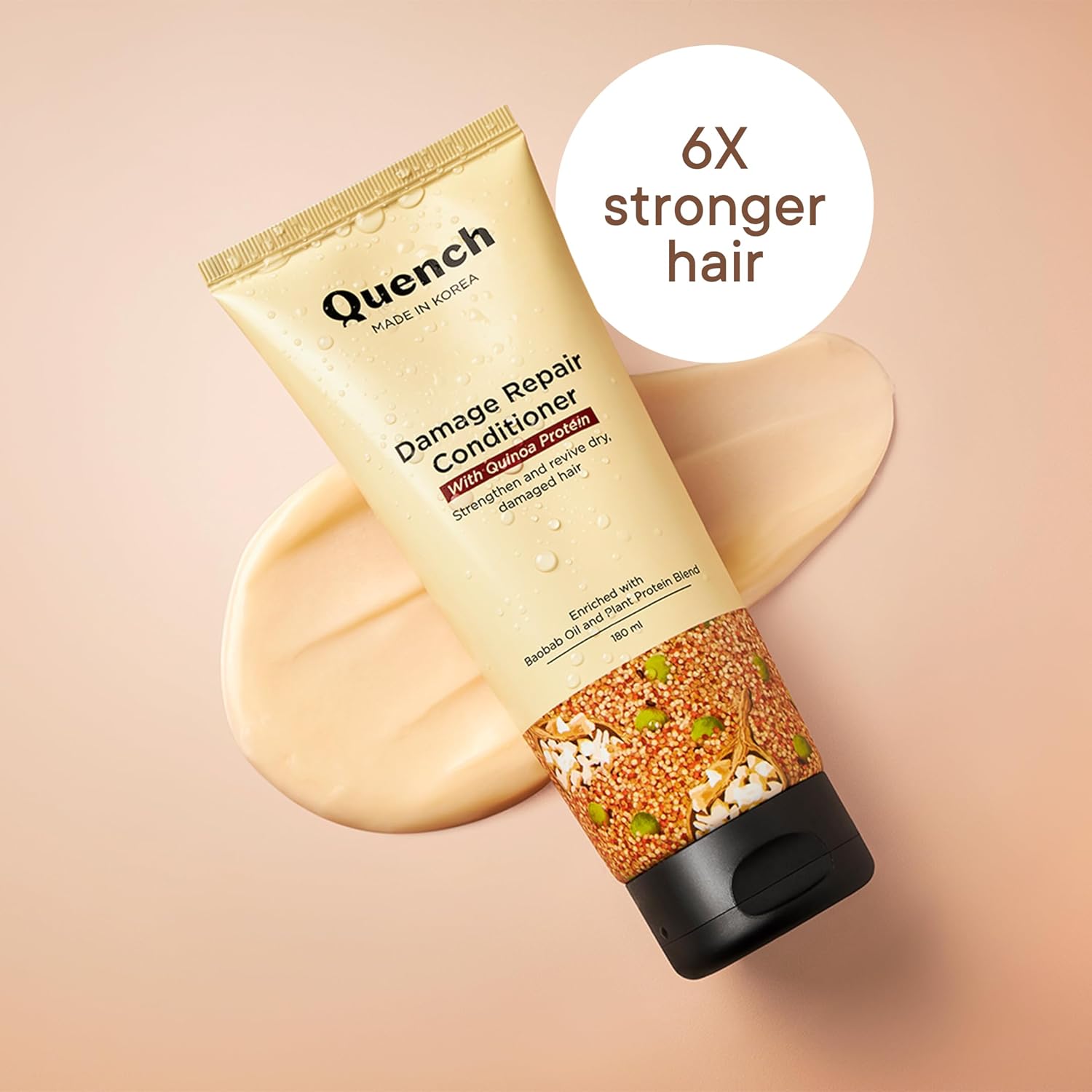 Revive dry, damaged hair with the Quench Damage Repair Conditioner, enriched with Quinoa Protein and Ceramides. This deeply nourishing formula restores moisture, repairs split ends, and strengthens brittle hair, leaving it silky, smooth, and manageable. Perfect for damaged, chemically treated, or dull hair, this conditioner enhances hair health and shine. Made in Korea, it’s your go-to solution for hair repair and maintenance.