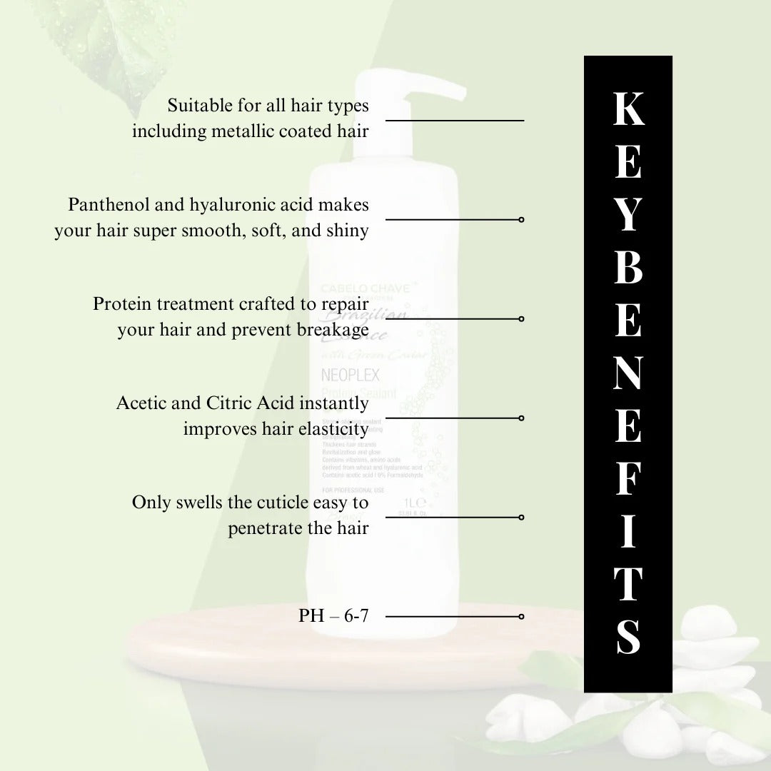 Prepare and protect your hair before chemical treatments with the Cabelo Chave Neoplex Pre-Shampoo. Formulated with advanced bond-protecting technology, this pre-shampoo treatment helps strengthen hair fibers from within, minimizing breakage and damage during coloring, bleaching, or straightening.