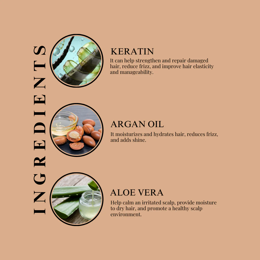 • Minimizes breakage and damage: By attaching itself to the hair shaft, keratin strengthens the structural integrity of hair. As a result, the hair is less likely to break or sustain injury.